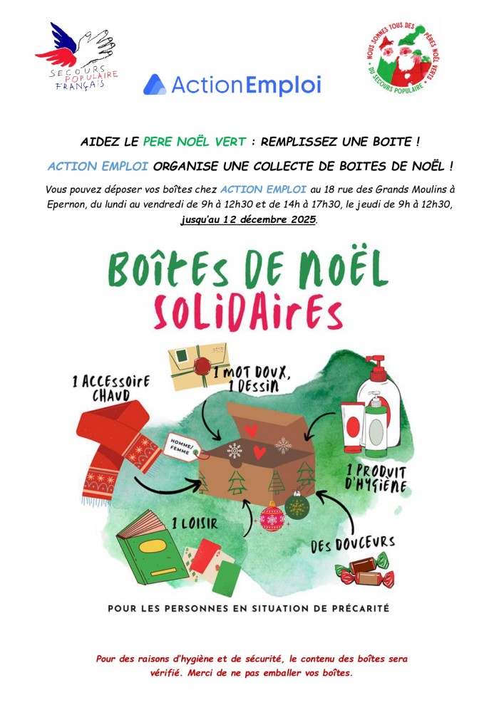 Boîtes de Noël Solidaires jusqu'au 12 décembre.