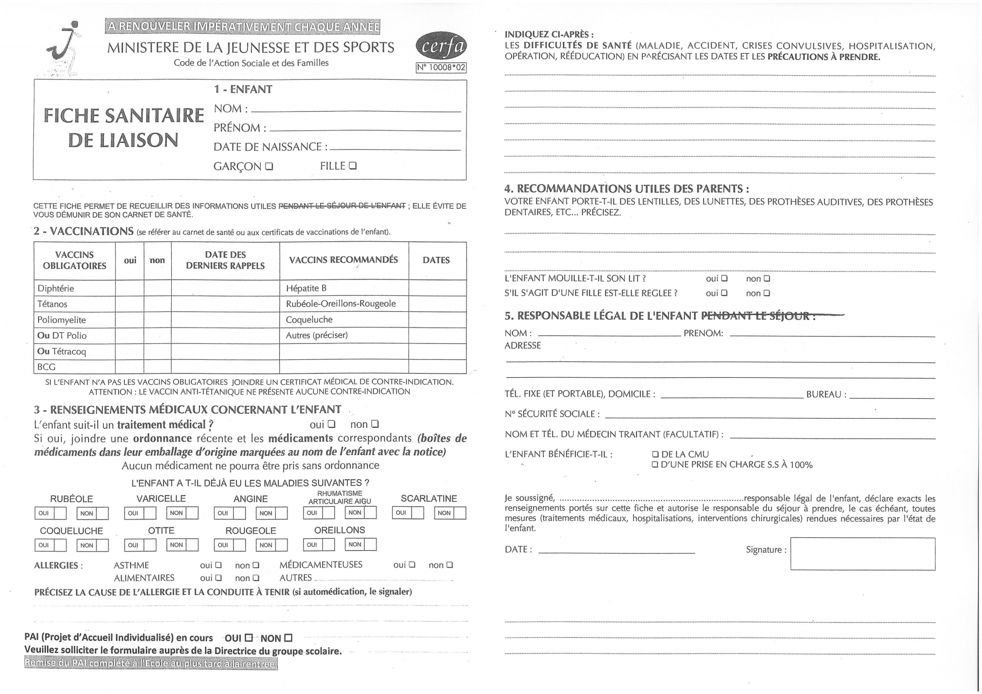 Télécharger ici le formulaire d'inscription scolaire et la fiche sanitaire (à remettre en mairie)