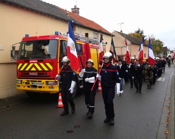 Le cortège s’est élancé depuis la salle polyvalente, rassemblant élus, anciens combattants, porte-drapeaux, sapeurs-pompiers volontaires et jeunes sapeurs pompiers de la caserne de Hanches-Épernon, gendarmes et de nombreux habitants venus partager ce moment de mémoire.