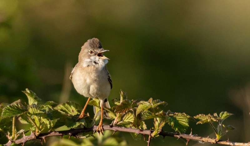 Sur les lieux de reproduction, la grisette se déplace d’un vol bas et direct, montrant le blanc de sa queue lorsqu’elle passe d’un buisson à l’autre.