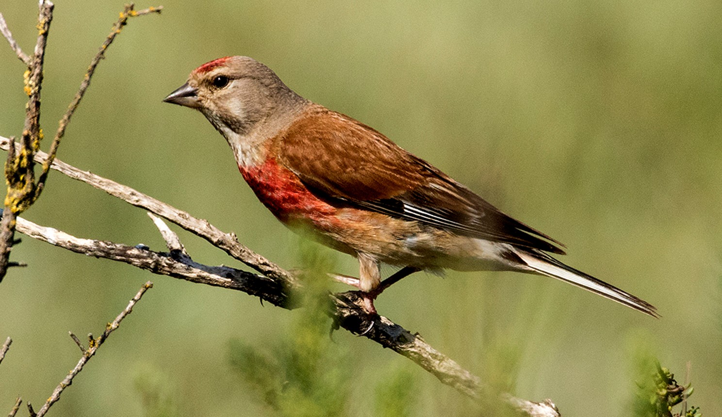 La Linotte mélodieuse est un petit fringille dont le mâle, en période nuptiale, est facile à identifier grâce à son plumage. Au fur et à mesure que le printemps avance, le plumage s’use, laissant apparaître les couleurs vives sous-jacentes, en particulier le rouge écarlate du front et de la poitrine.