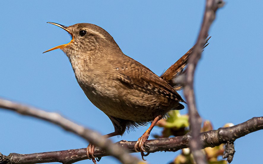 Si vous observez une boule de mousse, de petites branches et de plumes d’une dizaine de centimètres de hauteur dans le creux d’un arbre, et qu’un cri caractéristique résonne, vous êtes probablement en présence d’un Troglodyte mignon qui protège son nid.