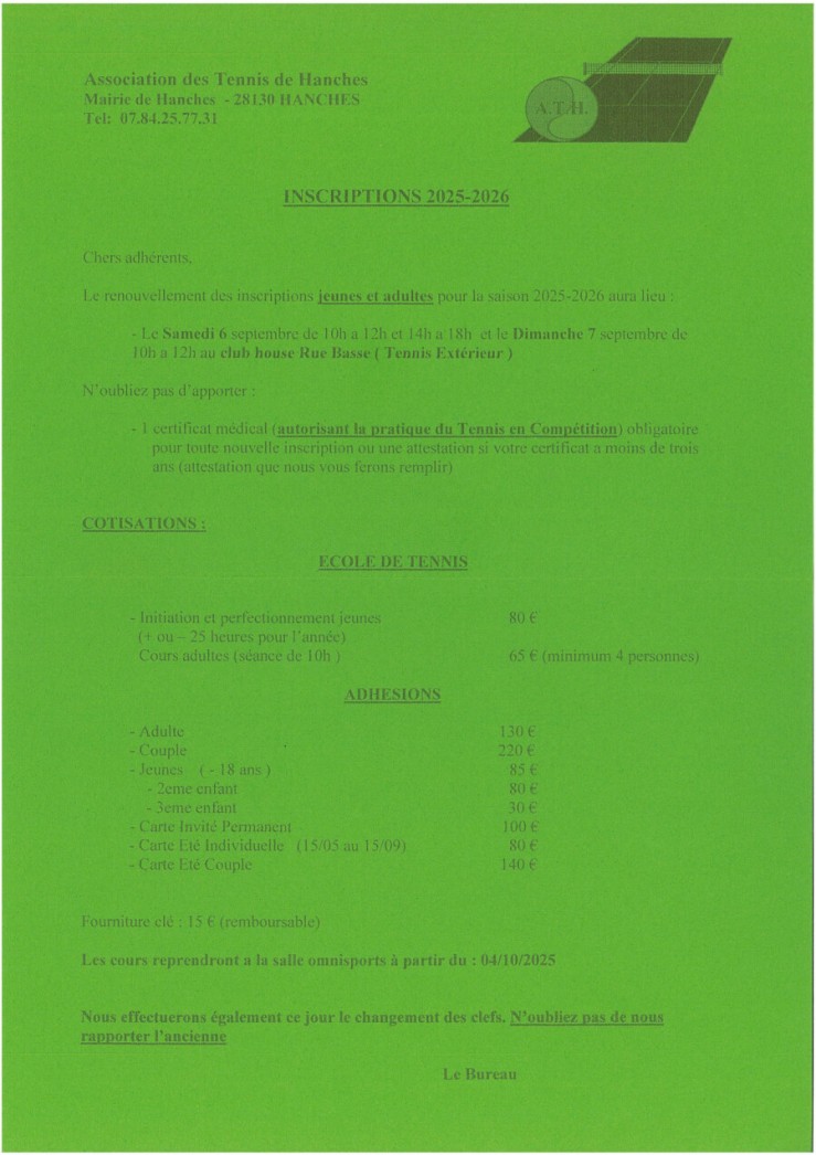 Le renouvellement des inscriptions Jeunes et Adultes pour la saison 2025-2026 aura lieu le