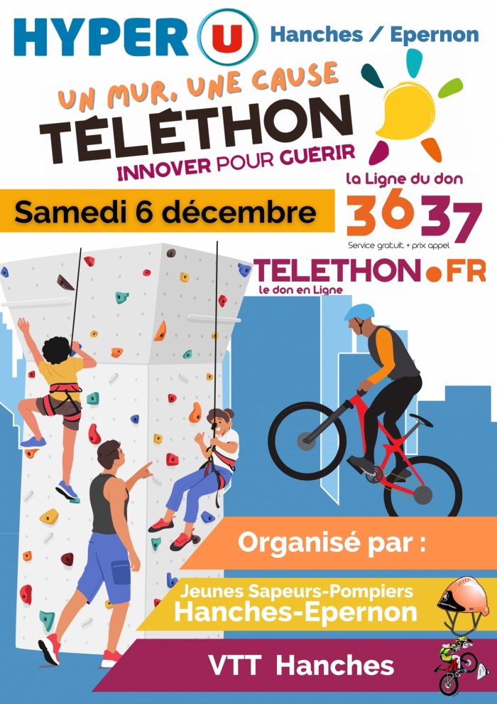 Dans le cadre du Téléthon, les jeunes sapeurs-pompiers (JSP) de Hanches/Epernon en partenariat avec la section VTT de Hanches vous proposent des animations :