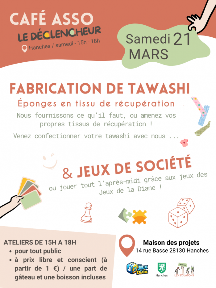 Le Déclencheur - Café associatif Du 21 mars 2026 à 15h00 à 18h00 Les Souâtons vous propose de venir fabriquer des Tawashis le Samedi 21 mars à la Maison des Projets.