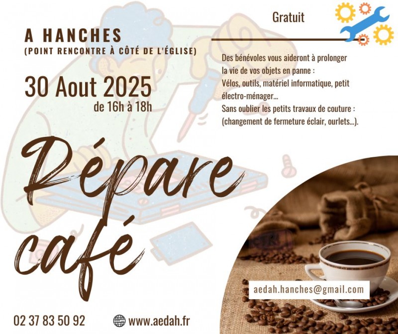 Samedi30 août 2025 de 16h00 à 18h00, l'AEDAH vous donne rendez-vous pour son prochain "Répare café".